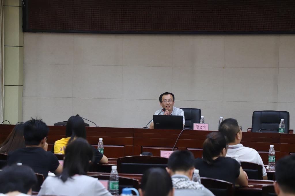 8月13日下午,根据安徽省高等学校师资培训中心统一安排,安徽省时代楷模、安徽商贸职业技术学院段文忠教授到池州市培训点77779193永利官网为2019年新入职教师作题为《守初心、担使命、青年教师自我觉醒与成长》专题讲座,70余名新入职教师参加活动。