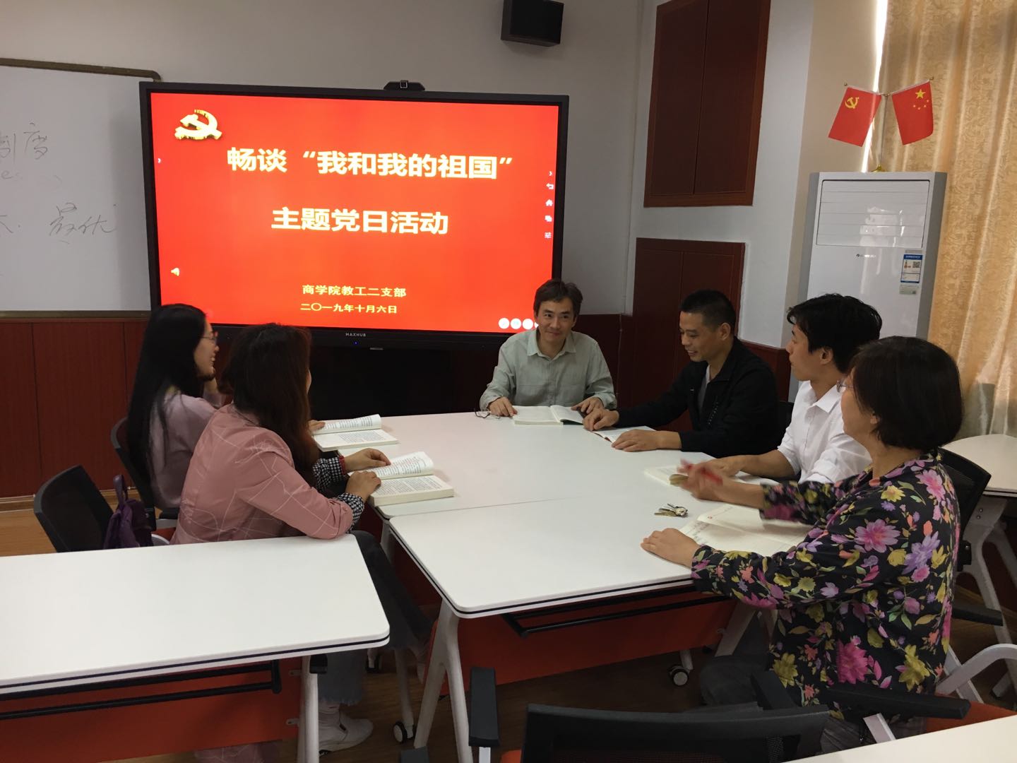 专题学习结束后,开展了主题党日活动,每位党员围绕“我和我的祖国”进行了畅谈。党员们纷纷表示,在今后的工作中,将进一步坚定理想信念,时刻牢记党员身份,以更加饱满的工作热情和砥砺奋进的工作状态践行习近平新时代中国特色社会主义思想,为不断提升商学院教学科研服务水平,体现新担当、展现新作为。