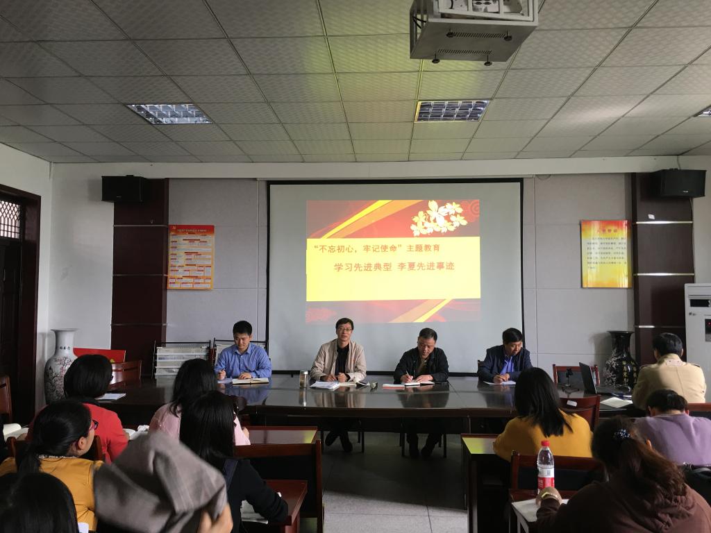 10月23日下午,外国语学院在会议室举行全体教工党员大会,学习时代楷模李夏先进事迹、开展“不忘初心、牢记使命”主题教育专题党课。会议由外国语学院党委书记张乐民主持。
