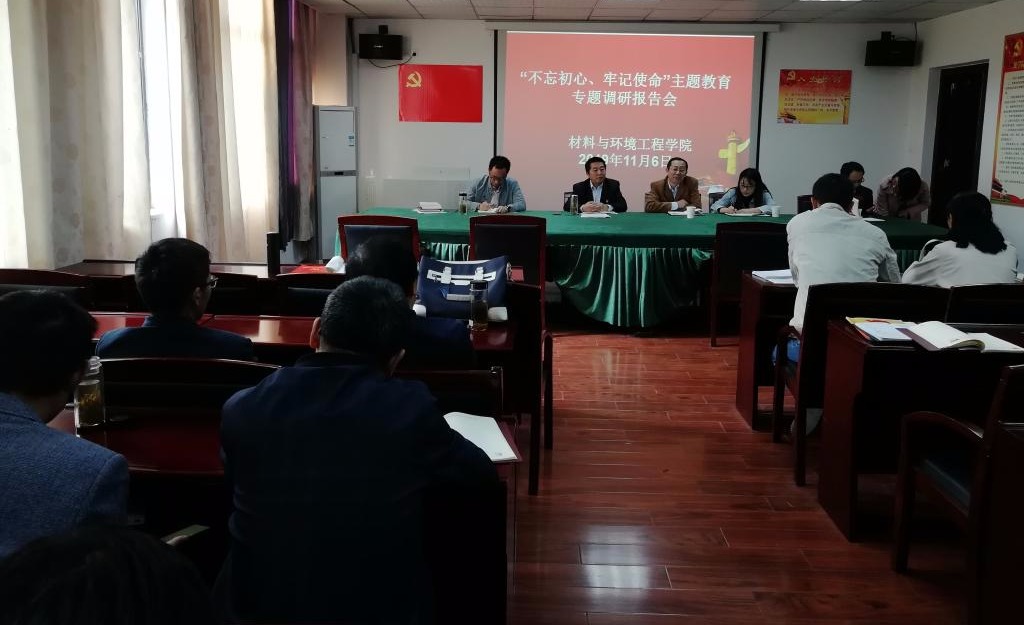 11月6日下午,材料与环境工程学院党委在逸夫楼会议室召开“不忘初心、牢记使命”主题教育调研报告,副校长汪贤才、学院党政领导班子、教师党员出席会议。会议由院党委书记何贵林主持。