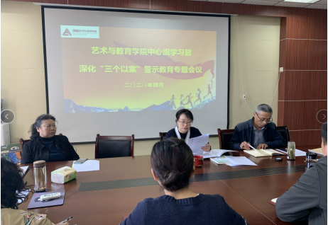 4月28日上午,艺术与教育学院召开二级中心组学习会暨深化“三个以案”警示教育专题会议,全体中心组成员、科级干部、党支部书记参与了学习讨论,会议由院党委书记杨静主持。