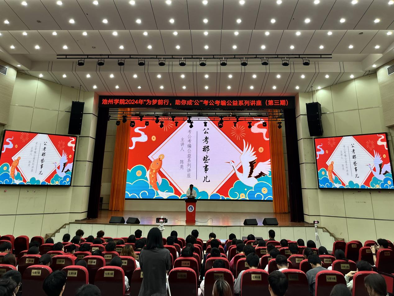 6月5日下午,校团委于博古礼堂组织开展2024年第三期以“为梦前行,助你成‘公’”为主题的考公考编公益讲座。本次讲座由池州易快上岸公考机构负责人陈亮担任主讲,各二级学院学生代表参加讲座。