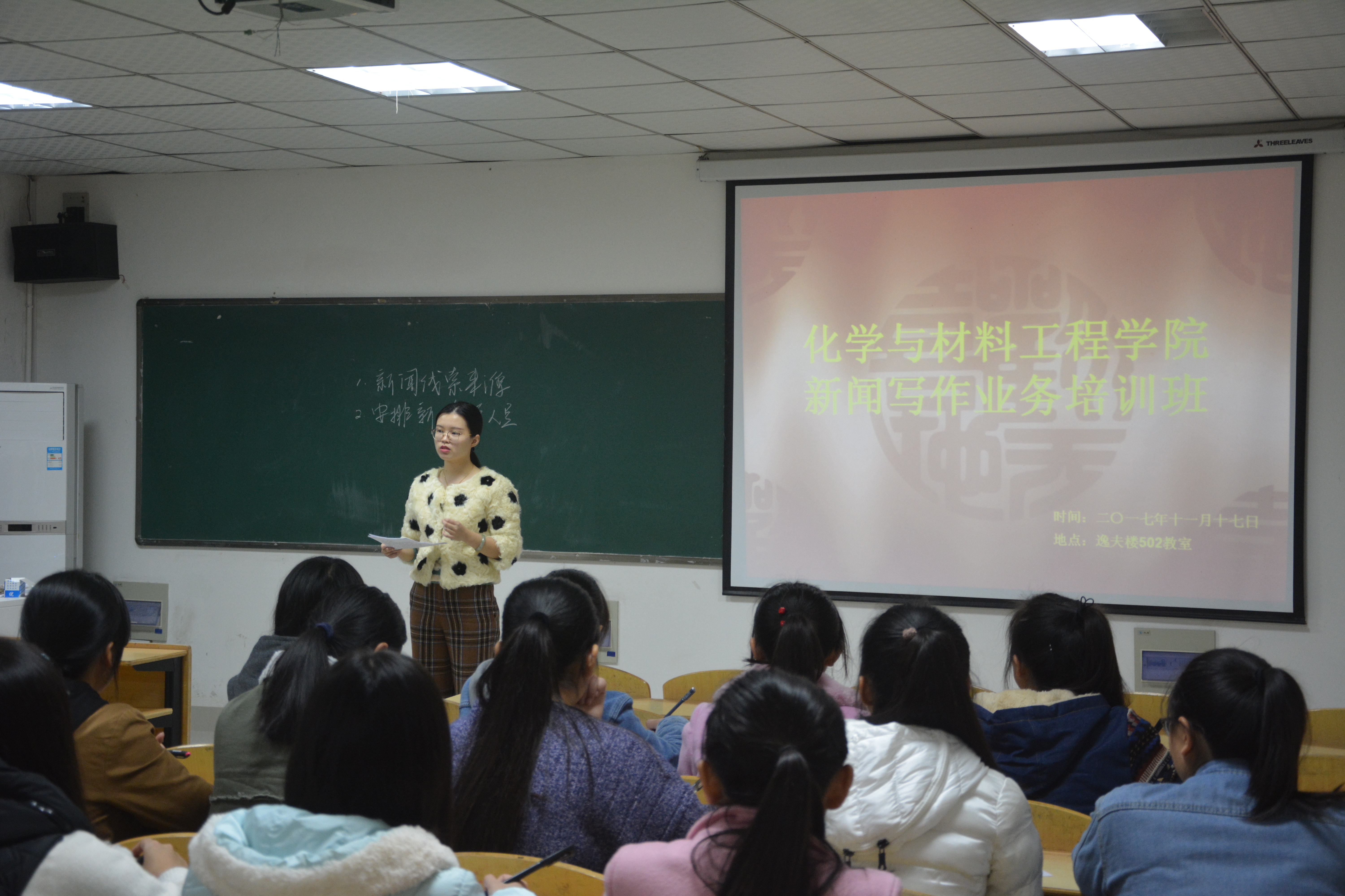 为进一步提升宣传工作者新闻写作能力,提高稿件写作质量。11月17日晚,化学与材料工程学院于逸夫楼502教室开展新闻写作业务培训班。团总支老师孙琪担任此次培训主讲,新媒体中心成员、社会实践部成员、青协综合信息部成员和新材料科技协会宣传部成员以及各个班级宣传委员通过PU签到参加此次培训。