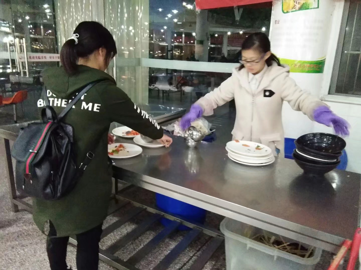 为在校园内形成“崇尚节约,摒弃浪费”的文化风尚,2017级商务英语2班团支部组织开展“勤俭节约,从我做起”主题系列团日活动。同学们线上开展“光盘集赞赢奖品”活动,让同学们踊跃晒“光盘”,并将光盘行动践行到底;线下,团支部所有成员走进食堂,开展历时3个小时的“食堂阿姨小帮手”体验活动。活动期间,同学们协助食堂工作人员盛倒饭菜,清理桌椅。此次活动让同学们体会到劳动者的艰辛与不易;