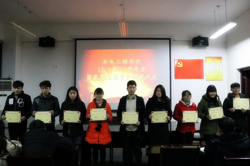 12月28日,机电工程学院在逸夫楼会议室举行2016-2017学年度国家励志奖学金颁奖仪式。全体获奖学生、各班级资助专员及部分学生代表参加了颁奖仪式,学院党总支书记杨静应邀出席并发表讲话。颁奖仪式由学院资助工作负责人宋李玲主持。