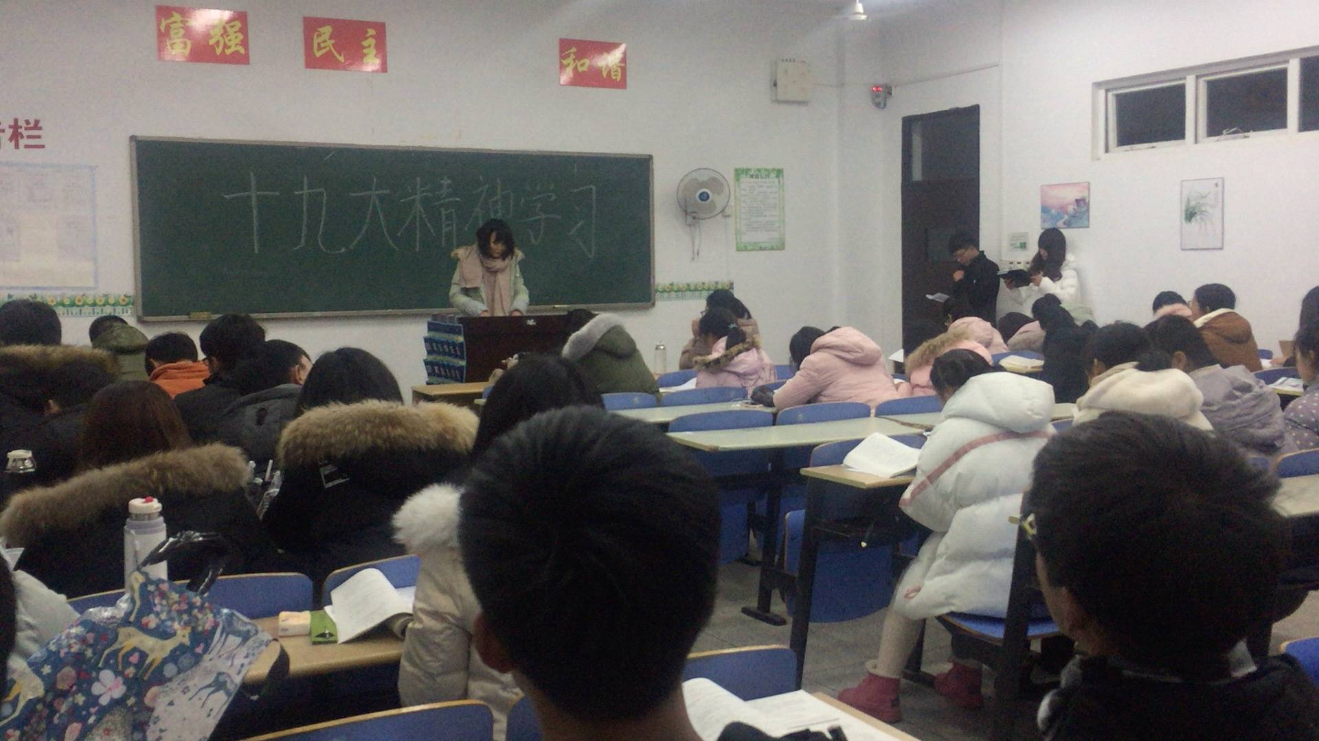 为深入贯彻落实党的十九大精神,引导广大团员青年树立和践行社会主义核心价值观,1月3日晚上,化学与材料工程学院十九大精神学习小组26名成员分成6个小组走进17级班级宣讲十九大精神。