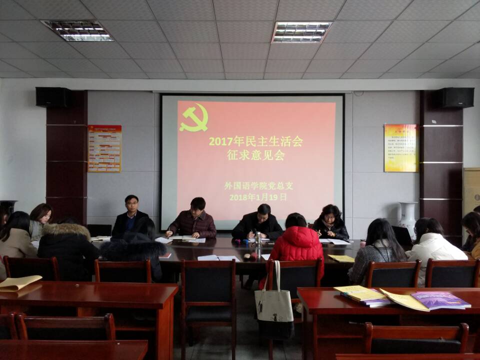 随后,举行了学院党总支就2017名民主生活会征求意见。与会党员结合2017年外国语学院党总支建设、发展等方面提出了很多建设性的建议和意见,同时指出工作中存在的不足。