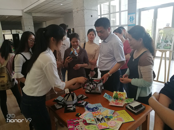 5月3日下午,音乐与教育学院在图书馆展馆举办“第四届学前教育专业技能比赛——儿童画、手工创作展(赛)”。校长柳友荣参观作品展。