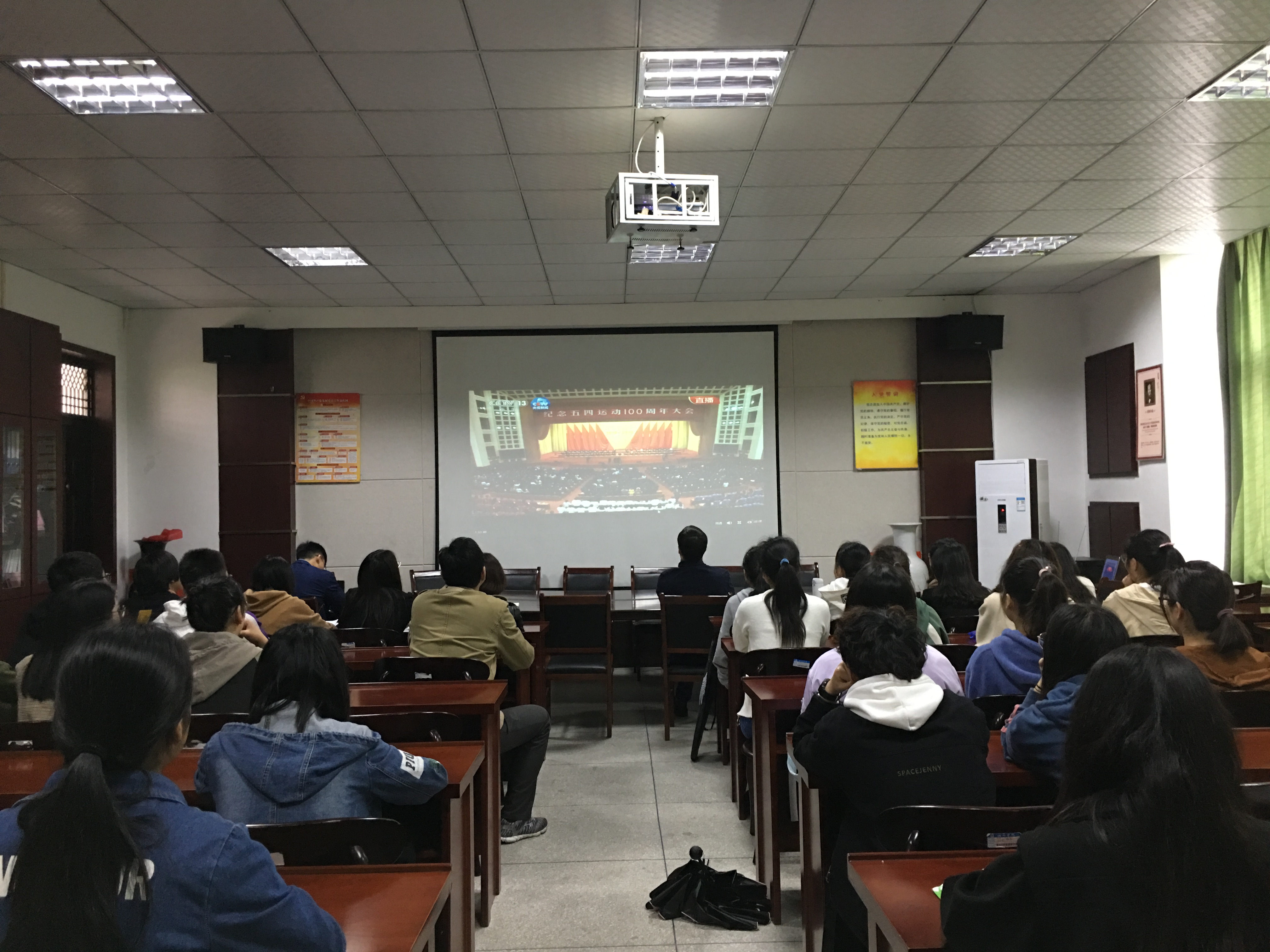 为弘扬五四精神,激发爱国热情,4月30日上午,外国语学院在会议室组织师生集中收看“纪念五四运动100周年大会”实况直播。参加集中收看的有外国语学院党政班子及60余名师生。