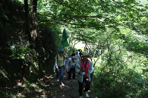 企业课堂授课结束后,九华天池风景区安排6名优秀导游员带领学生游览景区做示范导游讲解,让学生近距离实地观摩导游讲解,提高自己导游讲解的能力。