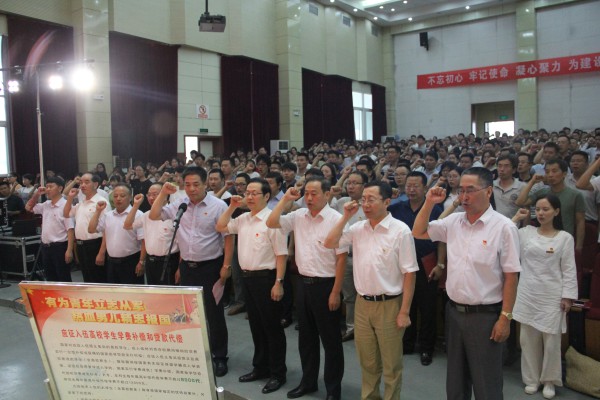 党委副书记孙晓峰代表学校党委向奋斗在学校各条战线上的全体党员致以节日的问候和美好的祝愿!他指出,中国共产党在98年波澜壮阔的历史进程中以坚定的理想信念,取得了一个又一个伟大的胜利,成功开辟出一条中国特色社会主义道路,使中国特色社会主义的制度、理论在中国大地蓬勃发展。党的十八大以来,以习近平同志为核心的党中央,不忘初心、牢记使命,以巨大的政治勇气和强烈的责任担当,解决了长期没有解决的难题,创造了一个又一个奇迹,展现了一个世界大党的新风貌,让中国特色社会主义进入新时代。