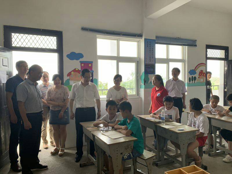 7月18日,党委副书记孙晓峰前往望江县长岭镇杨林中心学校看望慰问“英语教育助力”暑期公益志愿实践团队。