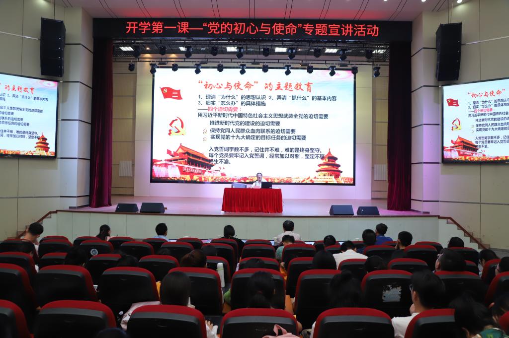 9月18日下午,校党委书记孙晓峰教授在博古礼堂为永利官网师生上了“开学第一课——党的初心与使命”专题思政课第一课。教务处、组织部、团委、马克思主义学院、体育学院等有关部门负责同志,新生班级辅导员,部分思政课教师,学生党员近400人参加了专题宣讲活动。校党委委员、宣传部部长胡兵主持宣讲活动。