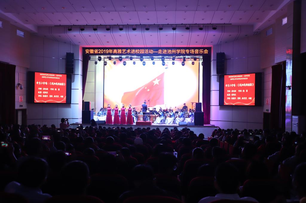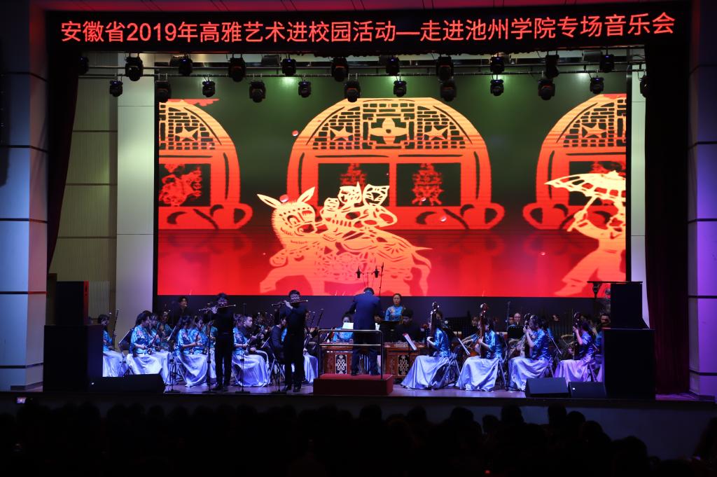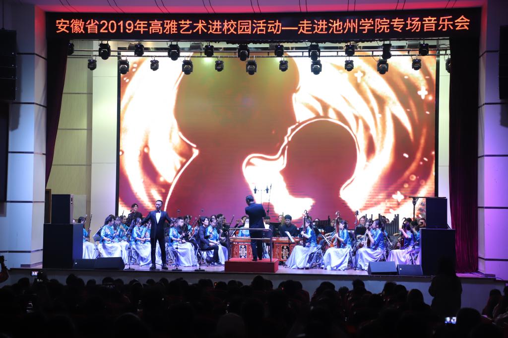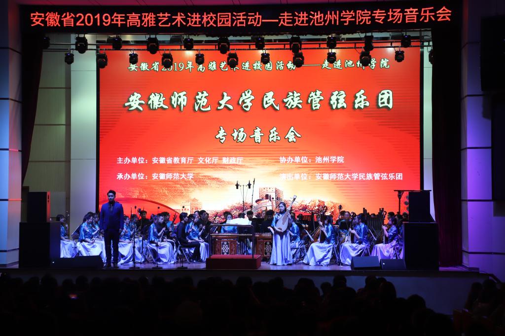 10月20日晚7点,由安徽省教育厅、文化厅、财政厅主办,安徽师范大学承办的高雅艺术进校园——安徽师范大学民族管弦乐团专场音乐会在永利官网博古礼堂精彩上演。演出前,校党委书记孙晓峰,党委委员、宣传部长胡兵接待了安徽师范大学艺术学院院长汪海元一行,各二级学院党委负责人、各职能部门负责人及学生代表共同欣赏了音乐盛宴。