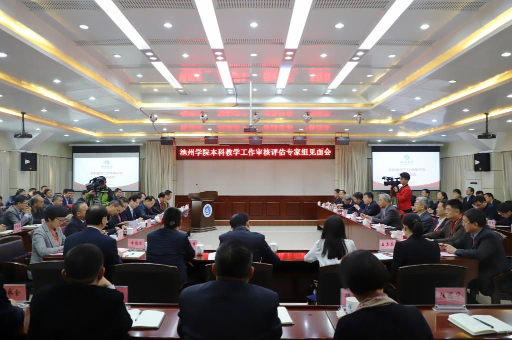10月28日上午,永利官网教育部本科教学工作审核评估专家见面会在办公南二楼会议室举行。教育部评估专家组组长、陕西师范大学原校长房喻教授主持见面会,教育部高等教育教学评估中心副主任李智同志,专家组成员、北方民族大学副校长陈永奎教授、广西大学原副校长韦化教授、广西师范大学原副校长钟瑞添教授、西安工程大学原副校长黄翔教授、内蒙古民族大学原副校长刘宗瑞教授、南京大学教育研究院院长王运来教授、中国劳动关系学院原教学质量管理办公室主任李红卫教授、东南大学原教师教学发展中心主任李霄翔教授以及项目管理员、中国海洋大学本科教学工作水平评估办公室副主任王真真老师和专家组秘书初丹丹老师,池州市委常委、常务副市长郭浩同志,省教育厅高等教育处处长梁祥君同志、副处长朱永国同志,池州市教育和体育局局长胡学慧同志,学校领导班子成员出席见面会,全校处级(含副处)以上干部参加会议。