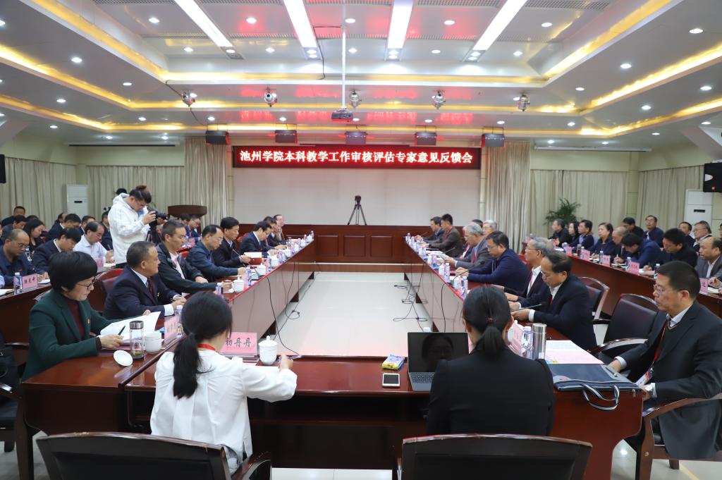 10月31日下午,永利官网本科教学工作审核评估专家意见反馈会在办公南二楼会议室举行。教育部评估专家组组长、陕西师范大学原校长房喻教授主持反馈会,专家组成员北方民族大学副校长陈永奎教授、广西大学原副校长韦化教授、广西师范大学原副校长钟瑞添教授、西安工程大学原副校长黄翔教授、内蒙古民族大学原副校长刘宗瑞教授、南京大学教育研究院院长王运来教授、中国劳动关系学院原教学质量管理办公室主任李红卫教授、东南大学原教师教学发展中心主任李霄翔教授以及项目管理员、中国海洋大学本科教学工作水平评估办公室副主任王真真老师和专家组秘书、教育部评估中心初丹丹老师,安徽省委教育工委副书记庆承松同志,池州市委常委、常务副市长郭浩同志,安徽省教育厅高等教育处副处长朱永国同志,池州市教育和体育局局长胡学慧同志,学校领导班子成员出席反馈会,全校处级(含副处)以上干部,部分教研室主任参加会议。