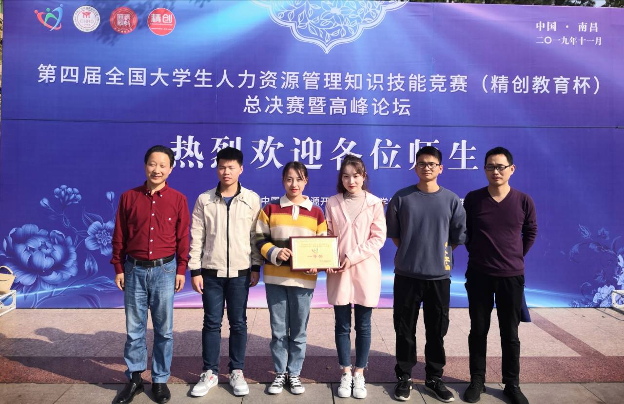 11月9至10日,第四届全国大学生人力资源管理知识技能竞赛总决赛(精创教育杯)在江西财经大学举行。永利官网人力资源管理专业夏紫菱、周玲、毛通通和徐士军四位同学组成的代表队荣获一等奖。