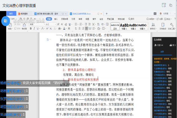 杨修菊老师在线上多门授课过程中,积极开展课堂教学“学习革命”。以培养学生自主学习为目标,采用指导使用教学资源、师生经典共读等方式开展教学。通过分享和指导使用教学课件、慕课及相关教学资源,使教学资源最大化地为学生服务,引导学自主学习,提高教学质量;开展与所授课程相关的的学术经典作品共读活动,每周陪伴学生完成50-80页阅读任务,并及时开展线上阅读交流和指导,在互动中提高综合素养和学术作品阅读能力。李应华老师采用超星学习通和钉钉直播相结合的方式进行《文化产业管理概论》的在线授课,利用超星的教学资料库为学生精选了课后阅读书籍,利用钉钉的直播功能错峰在线授课,对偶尔不能及时上线学习的学生,积极与之进行沟通,落实“一生一策”,学生参与热情高涨。