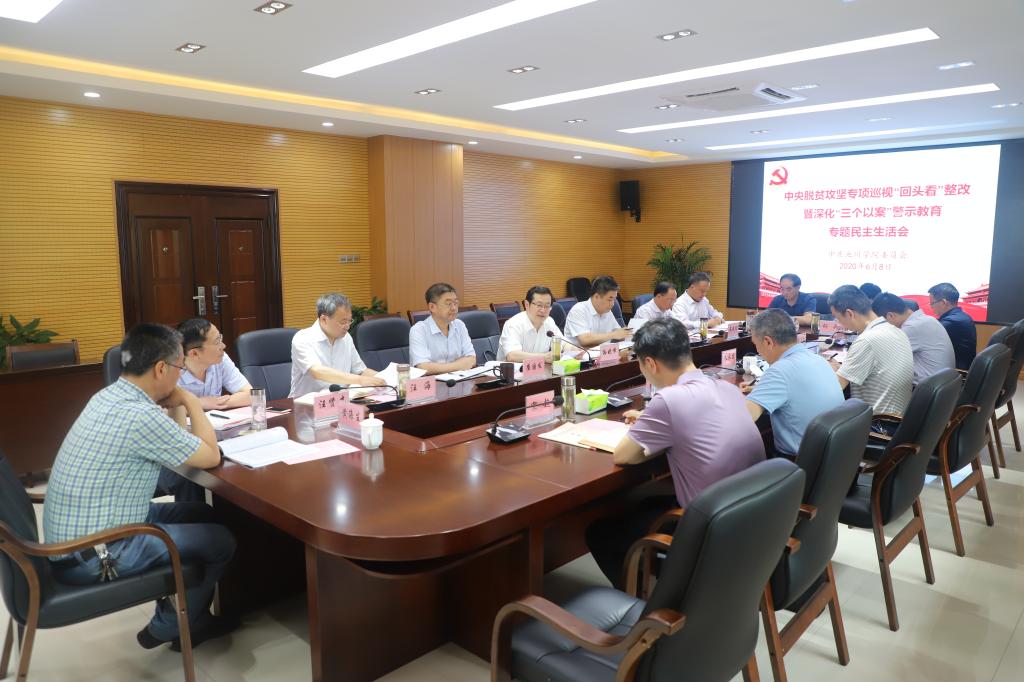 6月8日下午,校党委在办公北三楼会议室召开中央脱贫攻坚专项巡视“回头看”整改暨深化“三个以案”警示教育专题民主生活会。省委教育工委第六督导组朱永国一行到会指导,省委第二巡视组部分领导和成员参加会议,校党委书记孙晓峰主持会议。