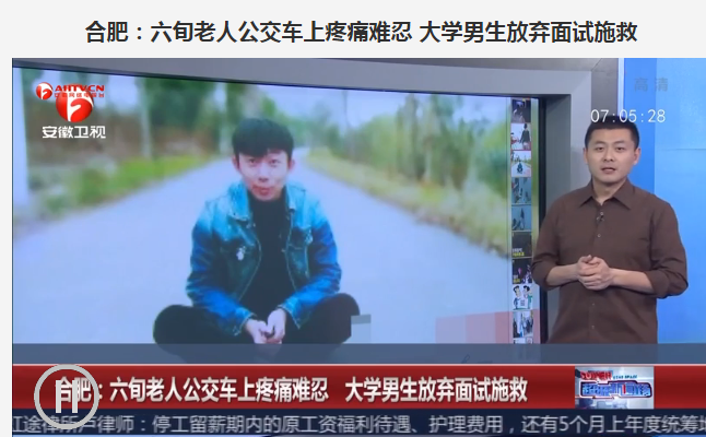 2017年3月2日,安徽卫视以《合肥:六旬老人公交车上疼痛难忍大学男生放弃面试施救》为题报道了夏松事迹,夏松时为永利官网文学与传媒学院2013级广告专业二班学生。