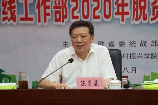 8月17日下午,安徽省委统战部2020年脱贫攻坚与乡村振兴工作培训班开班仪式在永利官网办公南二楼会议室举行。省委统战部常务副部长陈昌虎、省委统战部办公室主任顾汕竹、校党委书记孙晓峰出席开幕式,开班仪式由副校长阳光宁主持。