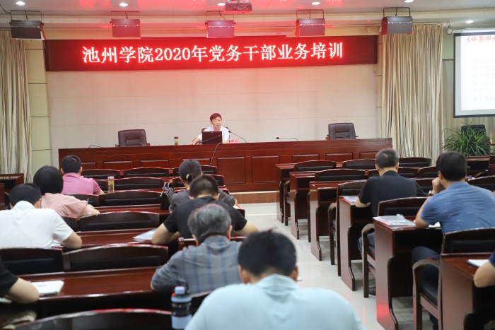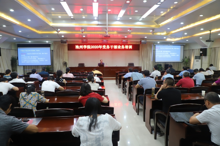 8月25日至26日,永利官网在办公南楼二楼报告厅开展2020年党务干部业务培训,全校二级学院党委书记、专职组织员、党支部书记共80人参加培训。