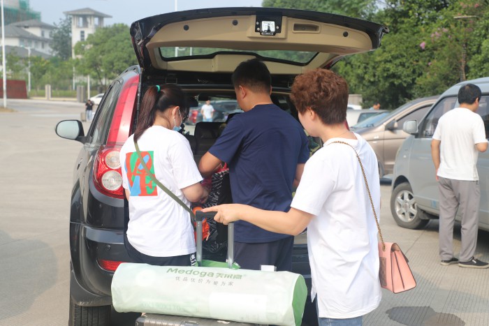 一转眼与校园已经分别8个月了,文学与传媒学院2017级网络与新媒体学生吴楠拖着大包小包行李走在返校的路上,太阳晒得汗流浃背,略显疲惫,但仍掩饰不了返校的喜悦。她说,走进久违校园,保安叔叔、值班老师、宿管阿姨等等,校园的一切都显得异常亲切,尤其是听到老师们说的一句句欢迎回家、一句句关心的话,一路的疲惫与燥热都化为了回家的喜悦。