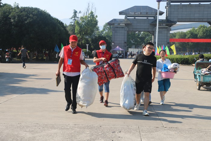 为了方便新生顺利完成报到注册,学校设立了报到登记处,组织了青年志愿者服务团队,指引新生按照疫情防控的要求,进行测温、扫码、登记。志愿者在帮助学生搬运行李的同时耐心为新生介绍校园,各项工作有序展开。