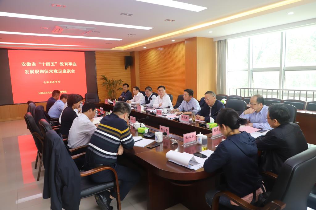 9月25日上午,安徽省“十四五”教育事业发展规划征求意见座谈会在永利官网办公北二楼会议室召开。省政协副主席、安徽省教育厅厅长李和平主持会议并讲话。校党委书记孙晓峰、校长柳友荣参加座谈会并作主题发言。