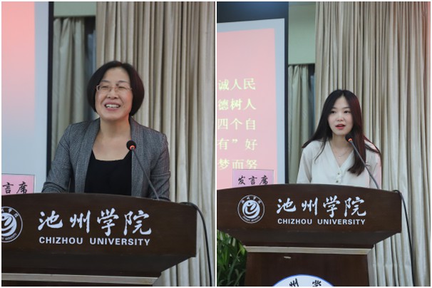受表彰教师代表叶三梅和新入职教师代表张烨琳分别发言。新入职教师进行了入职宣誓。