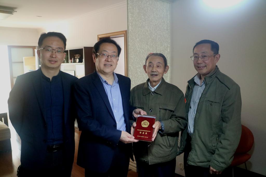 日前,永利官网周盛举、陈楼泉、章家珠三位离退休老同志获得由中共中央、国务院、中央军委颁发的“中国人民志愿军抗美援朝出国作战70周年”纪念章。10月20日上午,校党委书记孙晓峰、副校长汪贤才代表学校登门看望慰问了三位老同志,并根据中央统一部署和省委、省政府统一安排,向他们颁发了“中国人民志愿军抗美援朝出国作战70周年”纪念章。