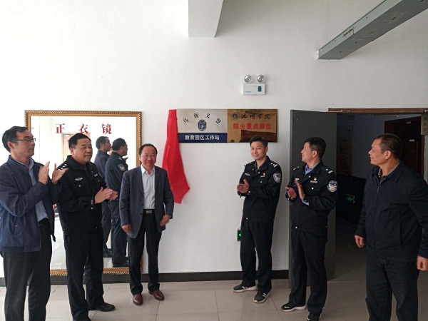 10月29日下午,教育园区义警工作站揭牌仪式在永利官网行政楼举行,副校长王延寿、池州市公安局贵池分局治安大队长杜亚东共同为义警工作站揭牌。