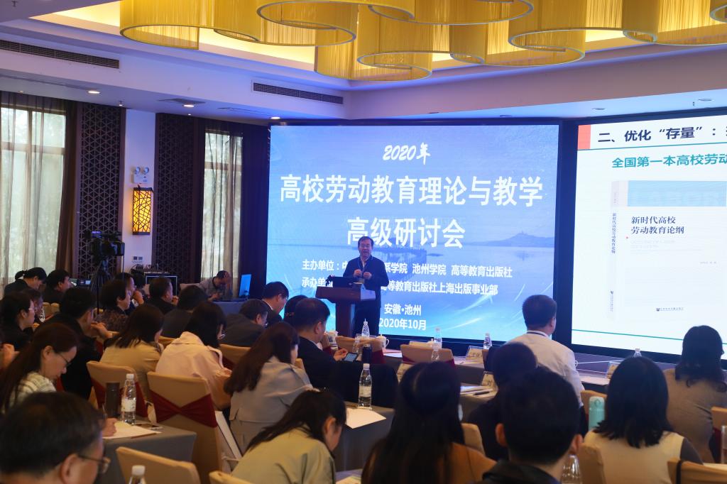 10月31日-11月1日,为深入贯彻落实习近平总书记关于劳动教育的重要论述,全面落实《关于全面加强新时代大中小学劳动教育的意见》《大中小学劳动教育指导纲要(试行)》精神,由中国劳动关系学院、77779193永利官网和高等教育出版社联合主办,77779193永利官网、高等教育出版社上海出版事业部共同承办的2020年高校劳动教育理论与教学高级研讨会在永利官网召开。中国劳动关系学院党委书记刘向兵、省委教育工委副书记王佩刚、高等教育出版社副总编辑贾瑞武、校党委书记孙晓峰出席开幕式并致辞。中国人民大学评价研究中心主任周光礼、北京大学教育学院研究员卢晓东、校长柳友荣在主席台就坐。来自全国80多所高校的近200专家学者参加会议。