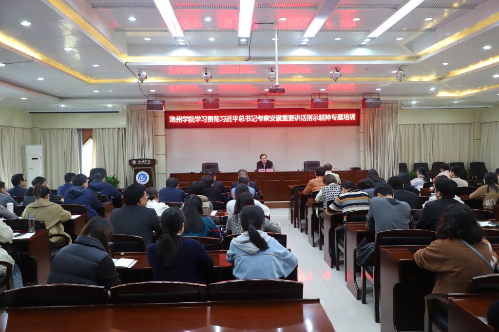 11月19日下午,永利官网在办公楼南二楼会议室开展学习贯彻习近平总书记考察安徽重要讲话指示精神专题培训。校党委书记孙晓峰作辅导报告,培训会由校党委副书记崔国发主持。