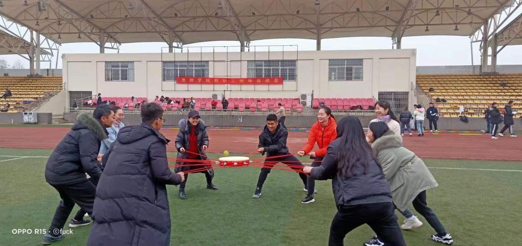 12月9日,2020年教职工趣味运动会在校运动场举行,共有16支教职工代表队,近200名教职工参加了同心击鼓、巨人脚步、两人三足、螃蟹折返跑、托球20米障碍跑等9个项目的比赛。