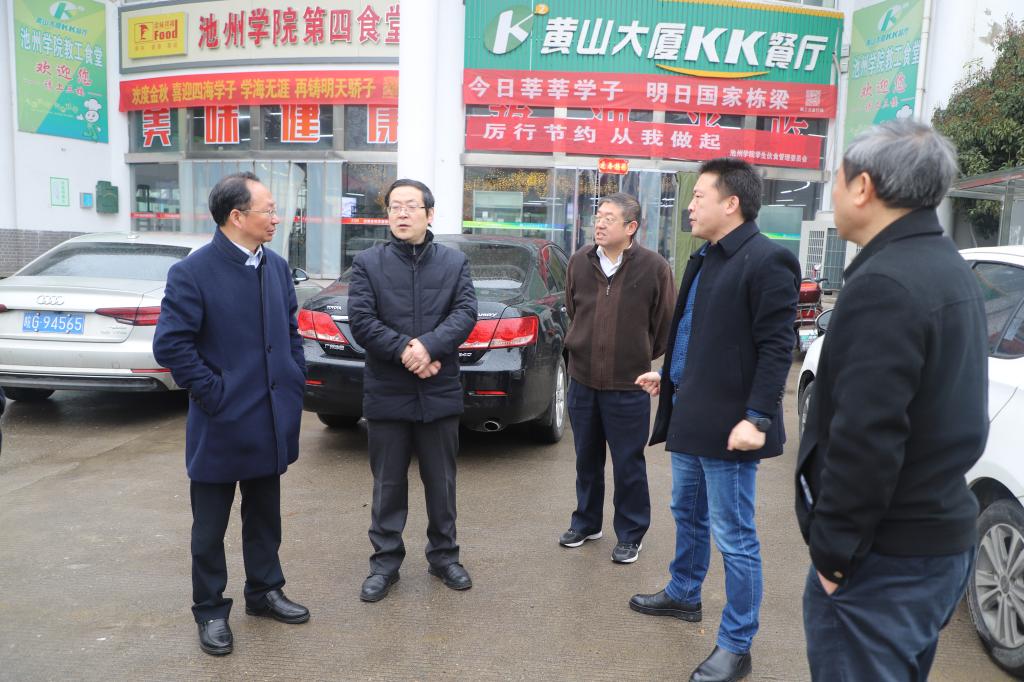 为做好常态化疫情防控和春季开学工作,3月5日上午,校党委书记孙晓峰、校党委副书记崔国发、副校长王延寿、校纪委书记汪海一行深入监控室、南大门、食堂、学生宿舍和大学生服务中心,就疫情防控、开学前准备、民生工程建设、后勤保障及安全卫生等工作进行了细致地检查和指导。