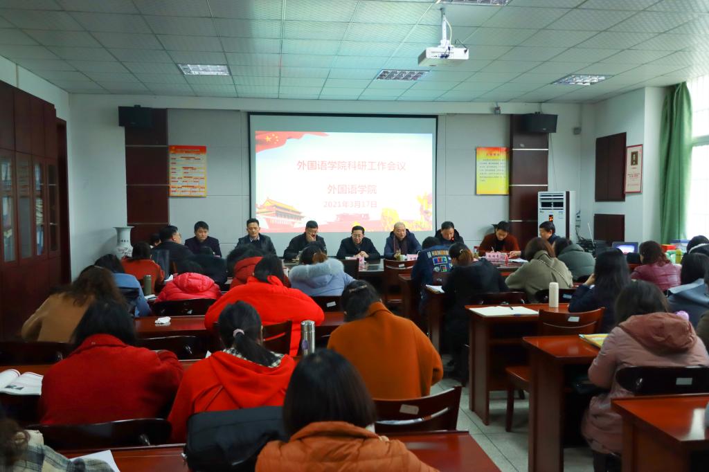 3月17日下午,副校长汪贤才到外国语学院调研科研工作,科研处负责同志及相关人员陪同。