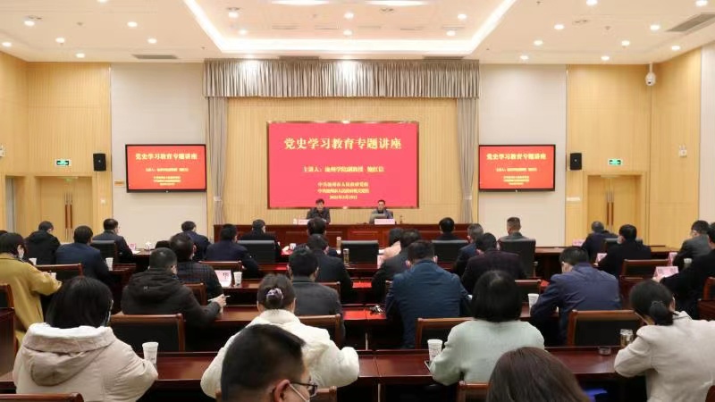 3月19日上午,永利官网马克思主义学院鲍红信博士应邀为池州市人民政府党组和机关党组作党史学习教育专题讲座。池州市政府秘书长盛国星主持了讲座。市政府党组和机关党组共70多位党员干部参加了活动。