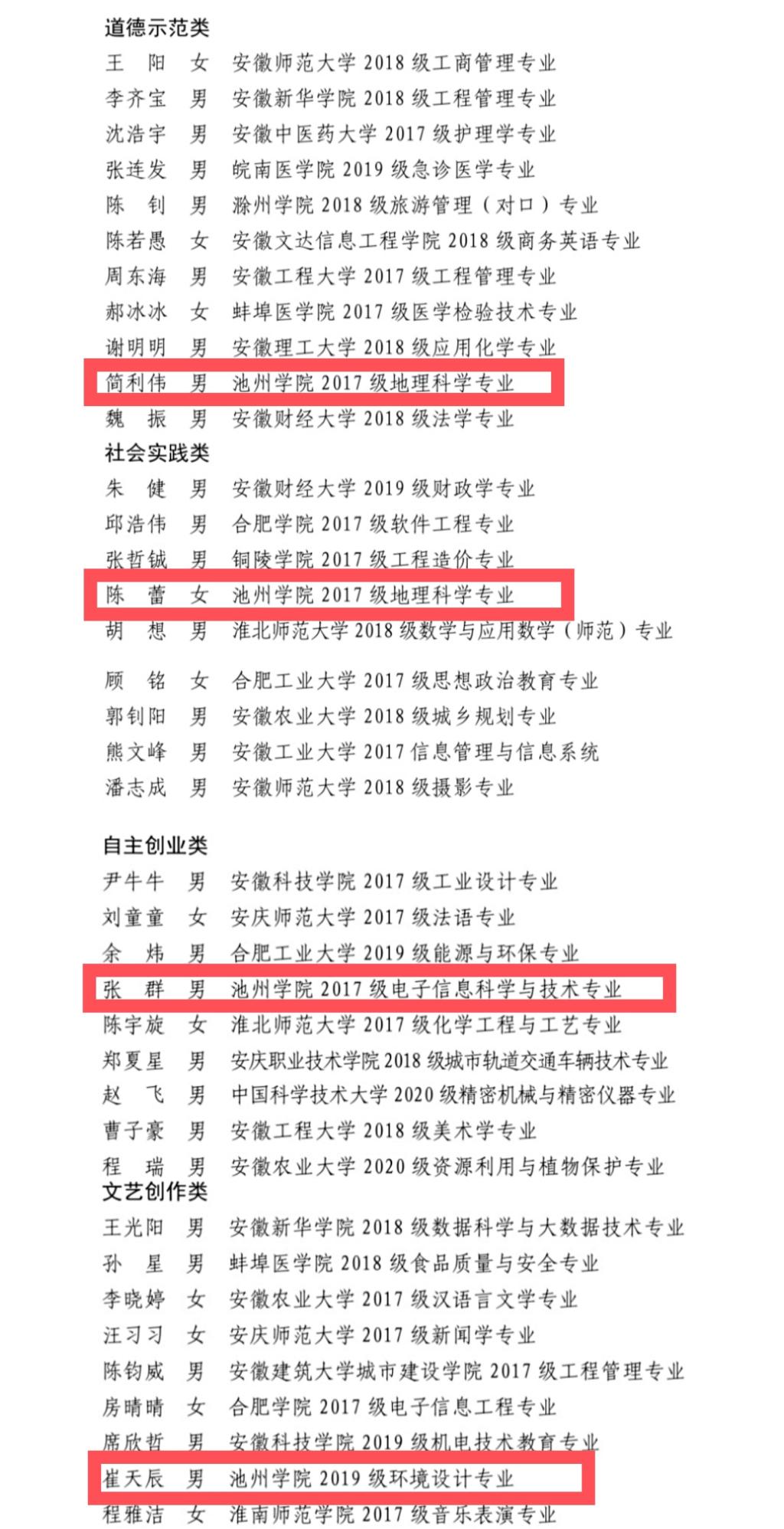 近日,2020年度“安徽省十佳大学生”选树工作圆满落幕,永利官网简利伟、陈蕾、张群、崔天辰分别获得道德示范类、社会实践类、自主创业类、文艺创作类“安徽省百优大学生”荣誉称号。