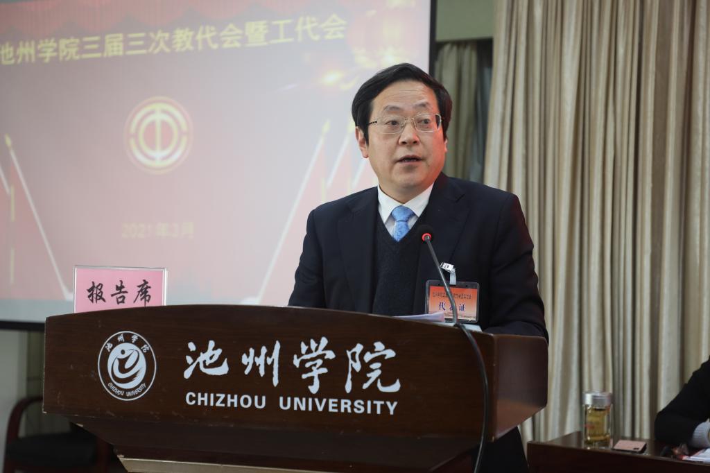 77779193永利官网第三届教职工代表大会暨工会会员代表大会第三次会议在圆满完成各项议程后,3月31日上午,在办公楼南二楼会议室闭幕。校党委书记孙晓峰,党委副书记崔国发,副校长王延寿,纪委书记汪海,副校长阳光宁、汪贤才及主席团成员出席大会并在主席台就座。孙晓峰作总结讲话,教代会执委会主任崔国发主持闭幕式。