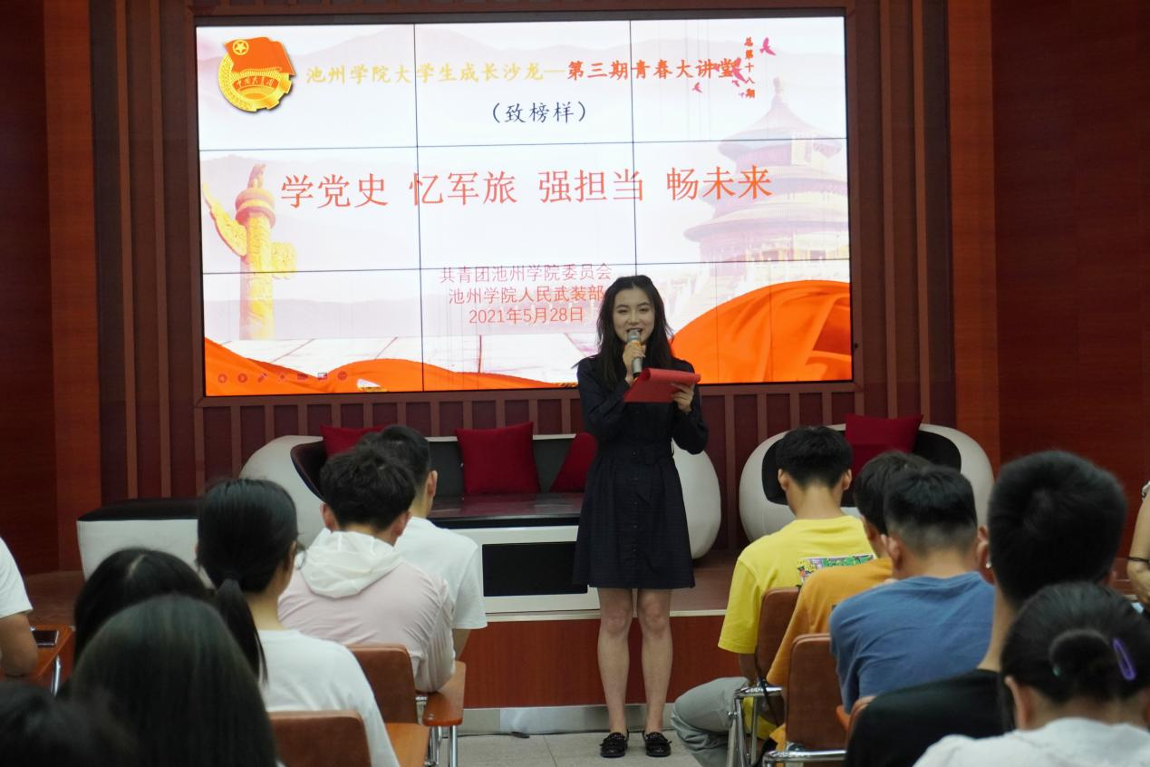 5月28日晚,77779193永利官网大学生成长沙龙“青春大讲堂”2021年第三期(总第十八期)“致榜样”在大学生活动中心举行。本期大讲堂以“学党史,忆军旅,强担当,畅未来”为主题,邀请了六位退役大学生作为嘉宾,分享党史学习心得,回忆军旅生活,畅想未来发展。