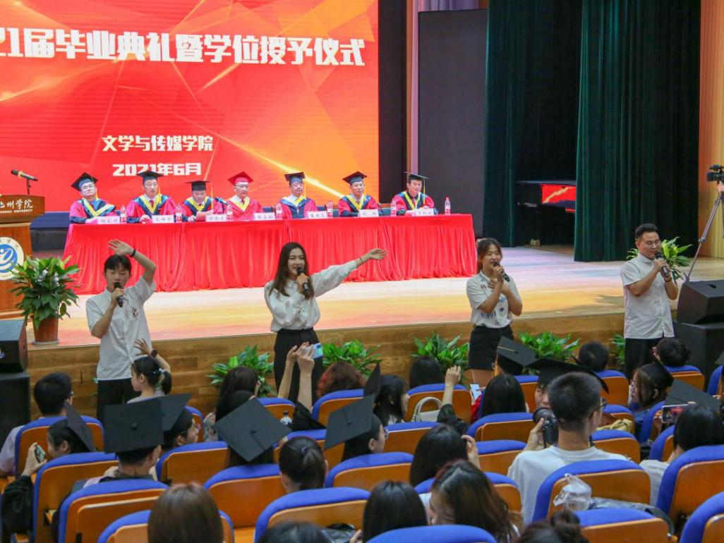 校党委副书记、校长张立驰代表学校全体师生员工,向同学们圆满完成学业致以最热烈的祝贺!他对同学们提出殷殷嘱托,希望同学们胸怀家国,做一个有生命热度的人;不甘平庸,做一个有生命高度的人;懂得感恩,做一个有生命温度的人。张立驰带领毕业生们重温了校训——以孔子为师,以行知为友,并祝愿同学们出走半生,归来仍是少年。