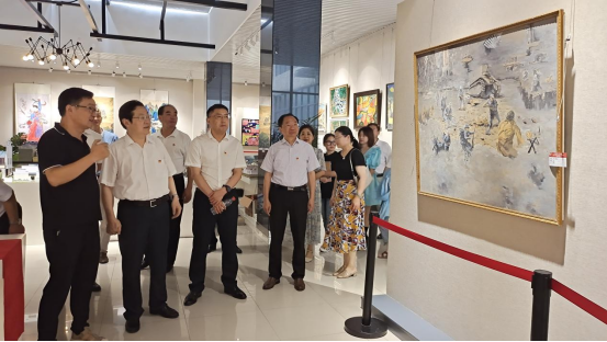 7月1日,艺术与教育学院在美术楼展厅举办“献丹青佳作,庆百年辉煌”——庆祝中国共产党成立100周年美术作品展。校领导孙晓峰、张立驰、崔国发、王延寿、汪海、阳光宁、汪贤才共同参观了展览。
