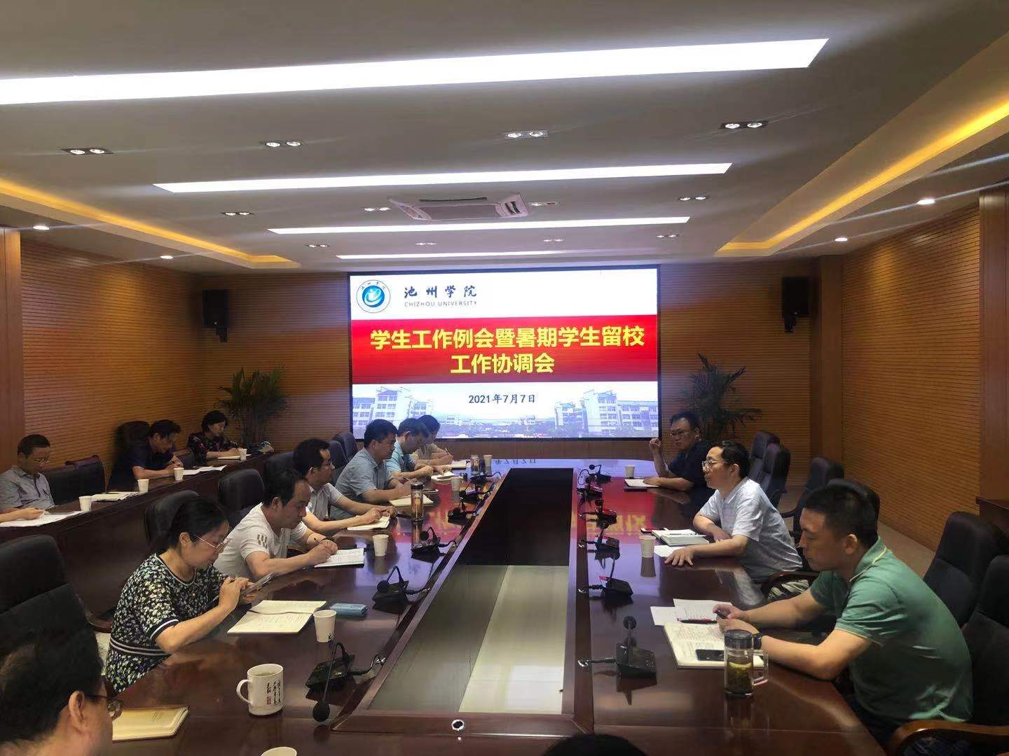 7月7日,学校在行政北二楼会议室召开学生工作例会暨暑期学生留校工作协调会。副校长汪贤才出席会议并讲话。