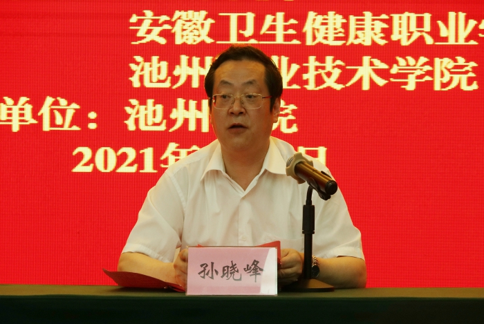 孙晓峰在致辞中代表学校对与会的领导和专家学者表示诚挚欢迎。他指出,在池三所高校联合主办池州高校党建与思想政治工作研讨暨经验交流会,这是进一步贯彻落实全国全省高校思想政治工作会议、全国全省教育大会、学校思想政治理论课教师座谈会等会议精神的重要体现和创新举措,必将进一步加强和改进新形势下党建与思想政治工作,必将为落实立德树人根本任务提供坚强思想保障,必将为建设特色鲜明的应用型高水平大学或技能型高水平大学凝聚强大动力。他指出,近年来,学校坚持“围绕中心抓党建,凝聚人心促发展”的指导思想,聚焦“党要管党、从严治党”的主责主业,坚守“为党育人、为国育才”的初心使命,根据高校党建和发展目标任务,突出党的政治建设,加强党对学校事业的全面领导,坚持思想政治工作守正创新,持续加强基层组织建设,深入推进党风廉政建设,统筹谋划、协同推进,锐意进取、开拓创新,在党建与思想政治工作上进行了积极探索,收获了一些成绩。