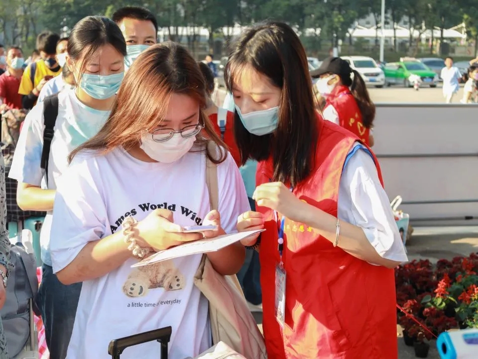 在入校处,志愿者为新生测量体温、查看健康码、行程码等,严格落实疫情防控措施。近千名热情的学生志愿者分布在火车站、校门口和各迎新工作点,为新生解决疑难困惑,向新生介绍学校情况,带领新生办理入学手续,帮助他们快速熟悉校园。“作为一个志愿者既可以帮助新同学快速了解校园,也可以帮助他们解决一些有关学习和生活的疑惑,这是一件有意义的事。”文学与传媒学院2020级广播电视编导专业的志愿者刘建军说。