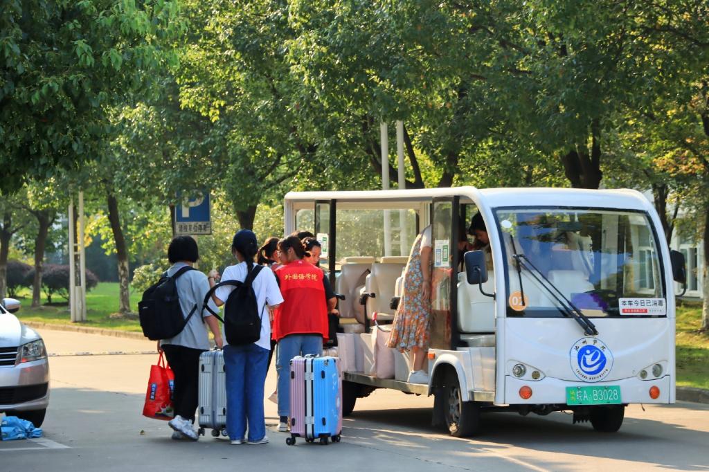 考虑到学生运送行李的不便,学校安排了多辆校园电动小公交,帮助学生托运行李。学校还在校门外搭建了家长休息区,供远道而来的家长休息。“我们非常理解学校的防疫要求,志愿者们也都很热情,希望孩子能够开心的度过大学生活。”一位国际经济与贸易专业的新生家长说。