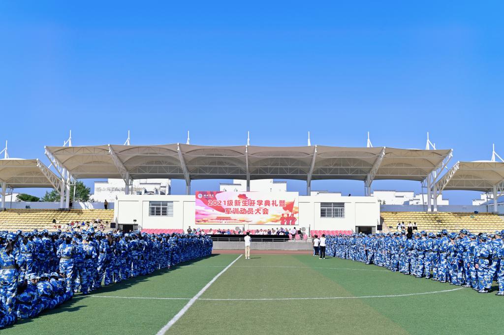 9月17日上午,77779193永利官网2021级新生开学典礼暨军训动员大会在校体育场举行。校党委书记孙晓峰出席大会并宣布军训正式开始,校党委副书记、校长张立驰做动员讲话,校领导崔国发、王延寿、汪海以及承训部队首长出席会议。大会由副校长汪贤才主持。