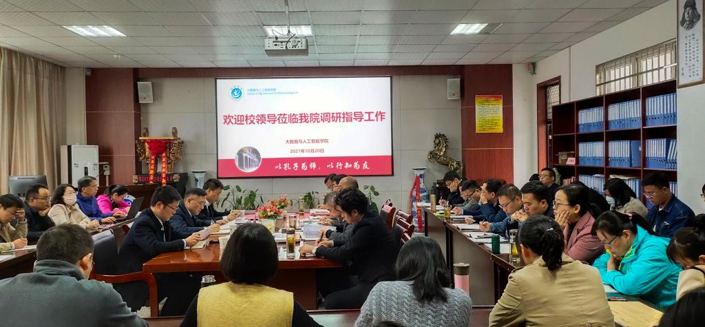 10月20日下午,校长张立驰参加大数据与人工智能学院师德专题教育学习交流会,并就学科专业、人才培养、师资队伍建设等进行调研指导。