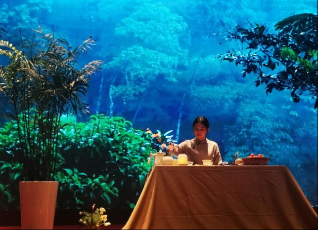 在个人赛中,鲁曼琪同学表演的《人在草木间》以沉浸式的泡茶表演将观众带入情境之中,获得了台上台下一致好评并最终荣获个人赛二等奖。